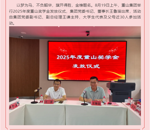 【頭條】金秋筑夢 愛責同行—重山集團舉行2025年度重山獎學金發(fā)放儀式