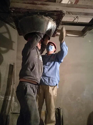 本次技改工作時間緊、任務重,動力車間梁學文主任接到任務后,不等不靠,立即組織人員分兩組同時進行設備改造。拆卸皮帶秤、焊裝下料口、吊裝絞刀、順接線路,在梁主任的帶領下,動力車間的員工分工明確、組織有序,僅用一天半的時間順利完成了8根絞刀的更換安裝工作,并在16日下午進行了調(diào)試標稱,確保了φ3.8m磨的順利開機運行。
