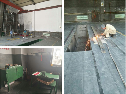 干凈雪白的墻面與漆黑光亮的地面形成了鮮明的視覺沖擊,墻面上 “講高效、重務(wù)實”六個鮮紅的大字,言簡意賅的表達了我們機車修理員的工作精神;地面全部用舊皮帶進行鋪設(shè),既干凈整潔,實現(xiàn)了修舊利廢,又能很好的避免油污。