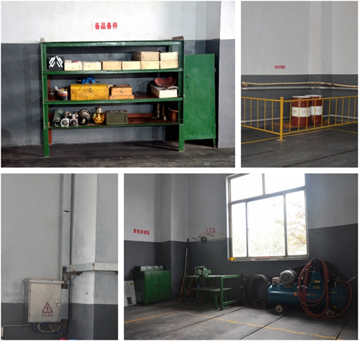 車間的工具用具、備品備件、機油等全部劃區(qū)存放,排列有序;車間線路整齊規(guī)范,安全合理。“講高效、重務(wù)實”六個鮮紅的大字,言簡意賅的表達了我們機車修理員的工作精神;地面全部用舊皮帶進行鋪設(shè),既干凈整潔,實現(xiàn)了修舊利廢,又能很好的避免油污。