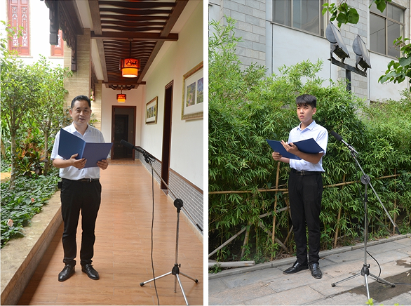朗誦者們在集團(tuán)公司風(fēng)景如畫的綠蔭下,在流水潺潺的水池旁,用深情質(zhì)樸的語言,讓一篇篇飽含情感的詞句飄落到人們的心中,感動著你我。讓無聲的文字,化為有聲的情感,以厚重的文化氣質(zhì),傳遞溫暖的人文情感。