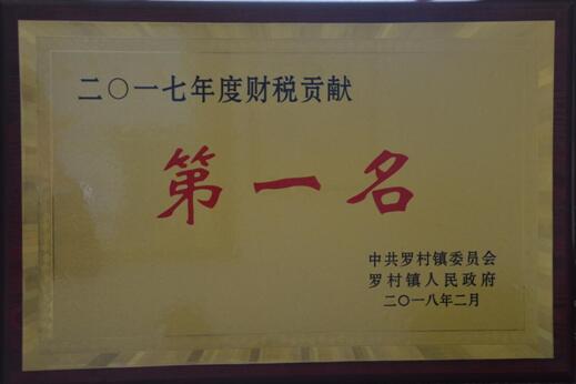 2017年2月8日,羅村鎮(zhèn)召開2017年度總結(jié)表彰大會,對2017年成績突出的先進(jìn)集體和個人進(jìn)行表彰獎勵,集團(tuán)公司榮獲羅村鎮(zhèn)財稅貢獻(xiàn)第一名的榮譽稱號。