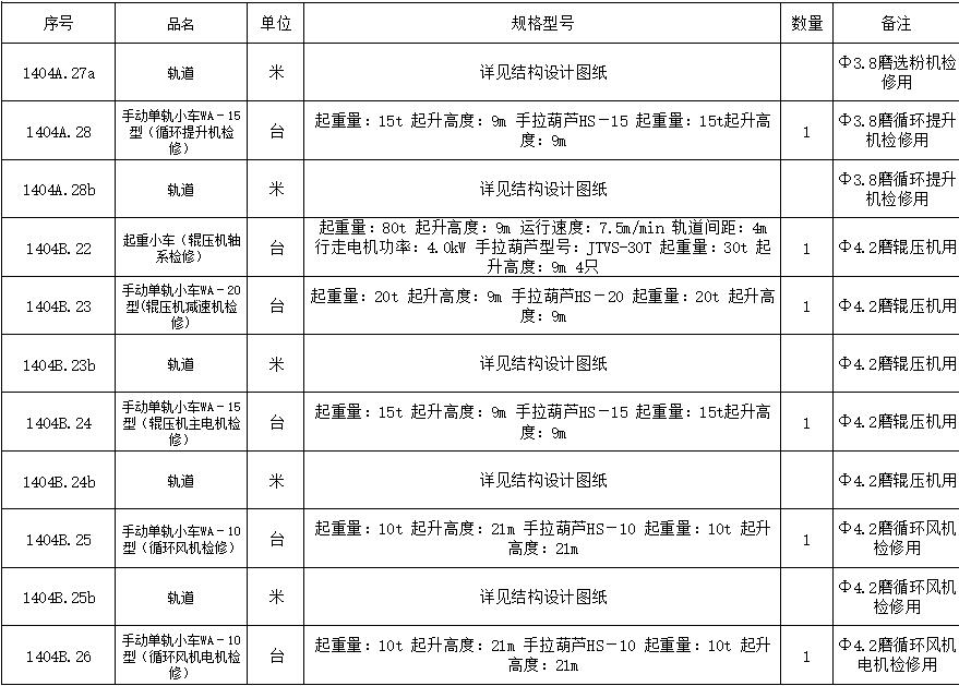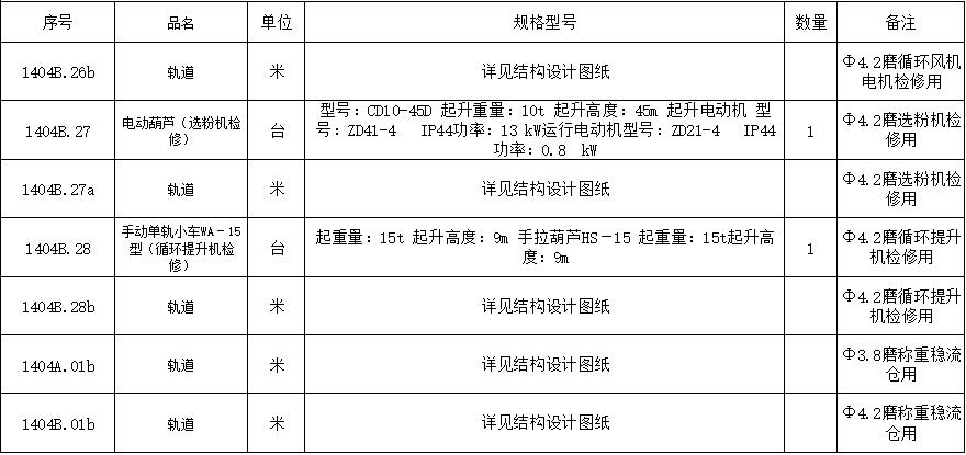 根據(jù)公司《采購招標(biāo)管理制度》,淄博魯中水泥有限公司定于3月21日—28日對φ3.8m、φ4.2m水泥磨輥壓機配套起重設(shè)備進(jìn)行公開招標(biāo),具體項目如下: