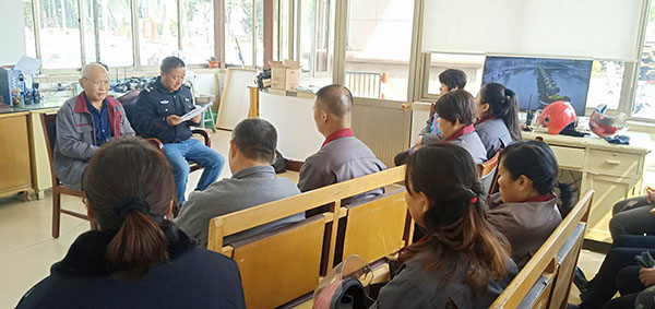 王宏和王士峰針對(duì)食堂、宿舍和浴室的環(huán)境改造提升以及安保巡邏、修剪綠化做了具體的安排。