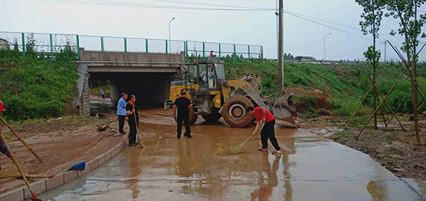 7月25日下午,天氣突變,暴雨傾盆而下。集團(tuán)總務(wù)處主任王宏憑經(jīng)驗馬上意識到村北橋洞內(nèi)可能積水,造成交通隱患,隨即,王宏立即組織人員冒著大雨趕到橋洞現(xiàn)場,經(jīng)勘查,傾盆的暴雨不斷的沖刷著周邊的田地,大量的泥漿堆積在橋洞下面,對職工上下班交通帶來嚴(yán)重影響。王宏一邊派人在路口引導(dǎo)行人走另一條安全道路,一邊組織人員對遭遇上下班險情的職工進(jìn)行救援,同時,協(xié)調(diào)鏟車到橋洞下面清理淤泥,并安排總務(wù)處的員工拿著鐵锨、掃帚奮力清理現(xiàn)場。經(jīng)過大家近2個小時的共同努力,堵塞的橋洞得到及時疏通,險情得到及時排除,保證了職工和行人的交通順暢和安全。