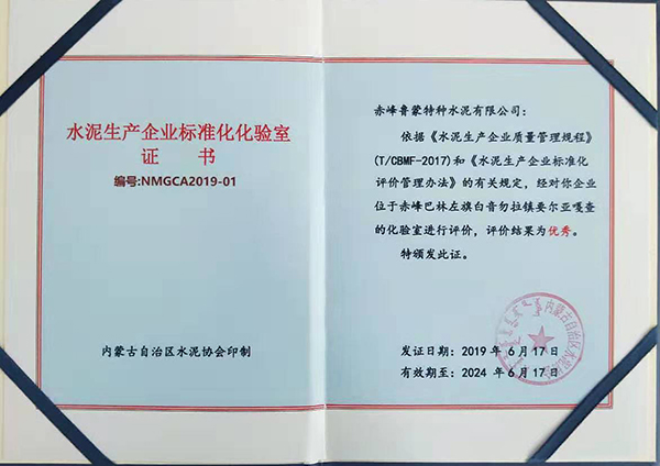 魯蒙水泥化驗(yàn)室榮獲“優(yōu)秀化驗(yàn)室”稱號
