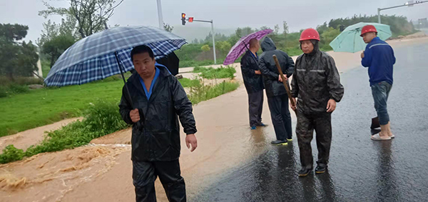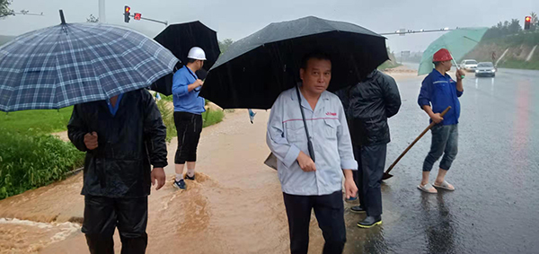 受臺(tái)風(fēng)“利奇馬”的影響,自8月10日的持續(xù)降雨造成公司部分路段積水嚴(yán)重。尤其是職工生活區(qū)與102省道交界處積水成湖,這個(gè)路段是生活區(qū)職工上下班的必經(jīng)之道,也是變電站電纜溝所在地,大量積水加帶湍急的水流對(duì)上下班職工造成嚴(yán)重影響,也威脅著變電站的安全運(yùn)行。11日早晨,集團(tuán)公司總經(jīng)理王魯淄得知這一消息立刻趕往現(xiàn)場(chǎng)部署工作。熱電廠韓紀(jì)永、張斌、趙剛、魯中水泥王樹俊,集團(tuán)總務(wù)處王宏、王立群、陳萬(wàn)鵬等現(xiàn)場(chǎng)成立防汛抗洪小組。一邊對(duì)現(xiàn)場(chǎng)進(jìn)行警戒,組織員工挖渠排水、擺放沙袋。另一邊協(xié)調(diào)供料車間、熱電廠4臺(tái)鏟車支援。4臺(tái)鏟車馬不停蹄從料場(chǎng)運(yùn)石頭到現(xiàn)場(chǎng)筑堤,經(jīng)過(guò)近6小時(shí)的緊張工作,近百余袋沙袋和40噸石頭在電纜溝筑起一道安全防護(hù)堤,及時(shí)阻止了山洪對(duì)電纜溝的沖擊,保證了員工的人身安全和公司正常生產(chǎn)。