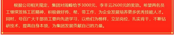 【獎勵】周峰、李豐云獲集團獎勵