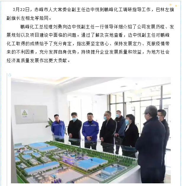 赤峰市人大常委會副主任邊中悅到鵬峰化工調(diào)研