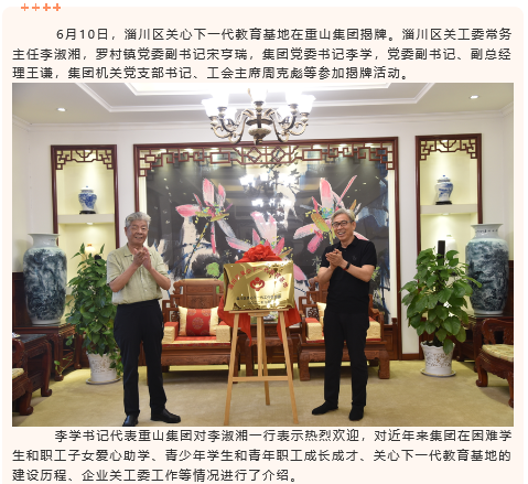 淄川區(qū)關心下一代教育基地在重山集團揭牌