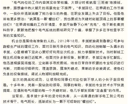 【重山人?重山事】拙誠(chéng)篤實(shí) 專注有恒——記魯中水泥電氣車間班長(zhǎng)李斌