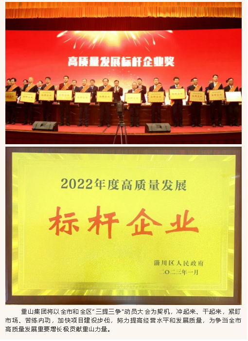 重山集團(tuán)榮獲“2022年度高質(zhì)量發(fā)展標(biāo)桿企業(yè)”