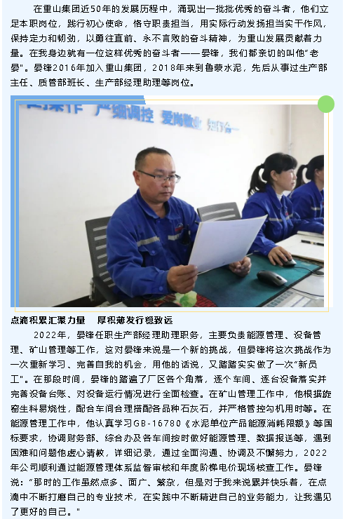 【重山人?重山事】“水泥人”用實(shí)踐詮釋工匠精神---記魯蒙水泥粉磨車間主任晏鋒