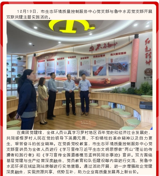 【黨建】理論宣講進(jìn)企業(yè) 雙聯(lián)共建促發(fā)展——市生態(tài)環(huán)境質(zhì)量控制服務(wù)中心黨支部與魯中水泥黨支部開展雙聯(lián)共建主題實(shí)踐活動(dòng)
