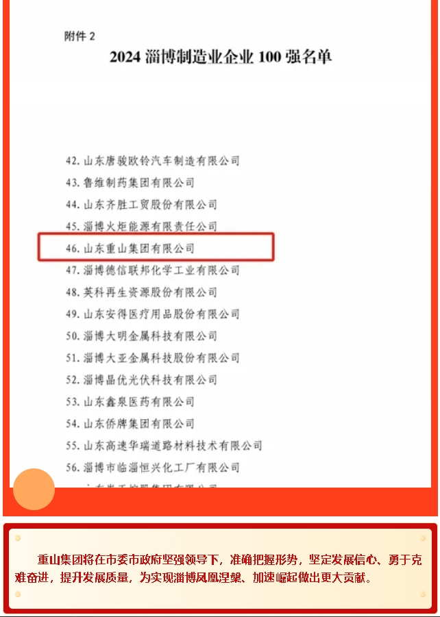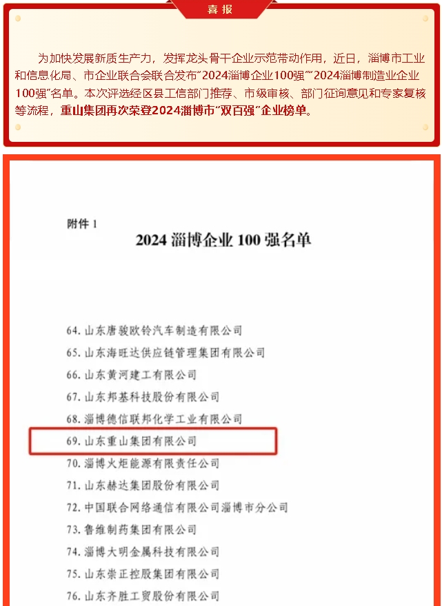 【頭條】重山集團(tuán)榮登2024淄博“雙百強(qiáng)”企業(yè)榜單