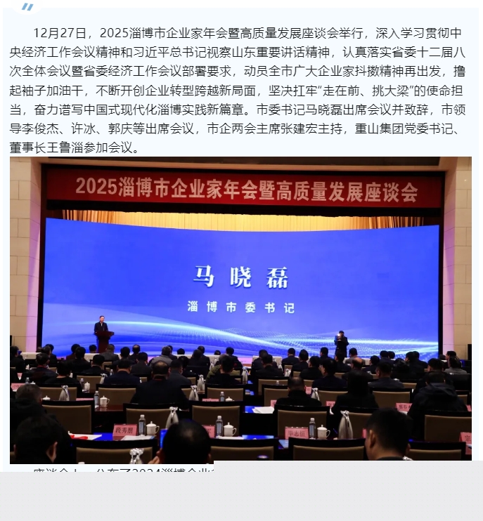 王魯淄參加淄博市2025年企業(yè)家年會暨高質量發(fā)展座談會