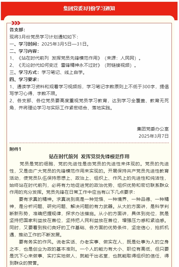 【通知】集團(tuán)黨委3月份學(xué)習(xí)通知