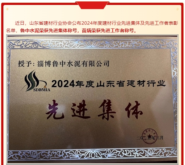 【榮譽】魯中水泥榮獲2024年度省建材行業(yè)先進(jìn)集體、先進(jìn)工作者