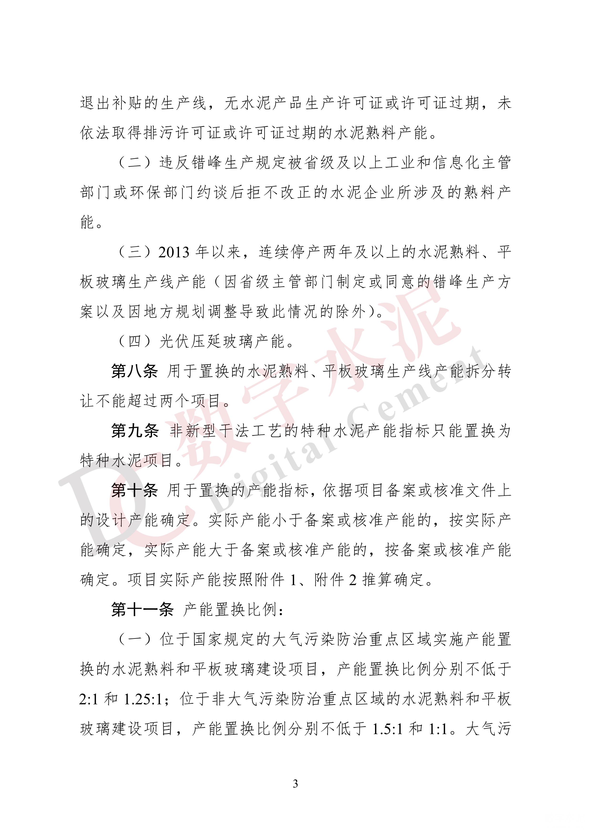 (二)產(chǎn)能指標(biāo)的認(rèn)定更加嚴(yán)格。一是強調(diào)了產(chǎn)能指標(biāo)必須在各省按年度更新并公告的本地區(qū)生產(chǎn)線清單內(nèi)。二是為避免“僵尸產(chǎn)能”復(fù)活,規(guī)定連續(xù)停產(chǎn)兩年及以上的水泥熟料、平板玻璃生產(chǎn)線不能用于產(chǎn)能置換。三是明確跨省置換應(yīng)召開聽證會,接受公眾和媒體監(jiān)督。