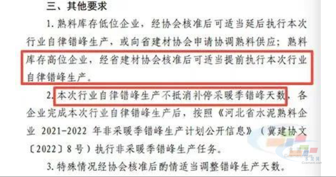 河北省水泥熟料企業(yè)開(kāi)展夏季行業(yè)自律錯(cuò)峰生產(chǎn)的預(yù)備通知
