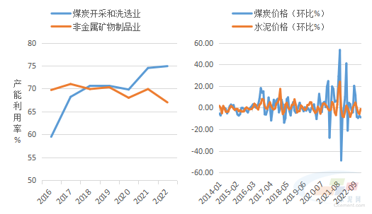 圖3:煤炭和建材產(chǎn)能利用率對比 圖4:2021-2022煤價(jià)波動加劇