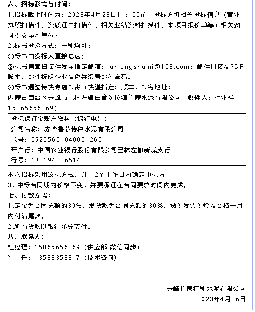 【招標(biāo)公告】魯中水泥、魯蒙水泥