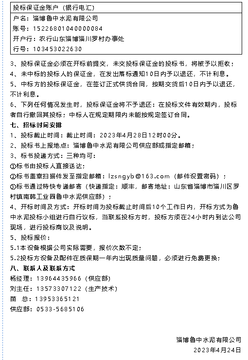 【招標(biāo)公告】魯中水泥