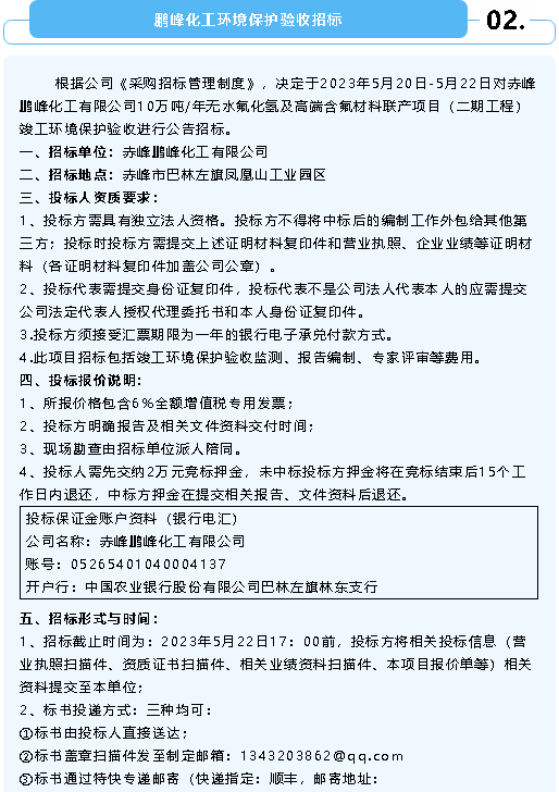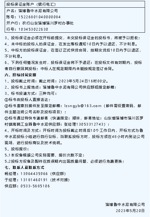 【招標公告】魯中水泥、鵬峰化工