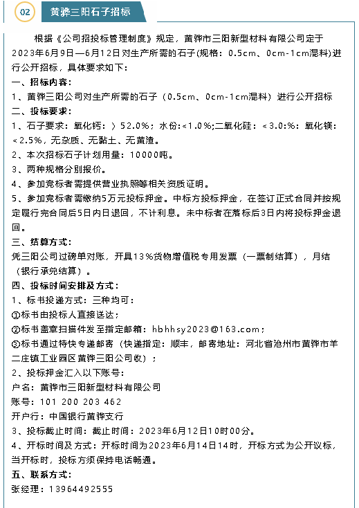 【招標(biāo)公告】黃驊三陽(yáng)