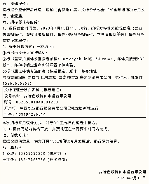 【招標(biāo)公告】魯蒙水泥包裝袋、原材料招標(biāo)