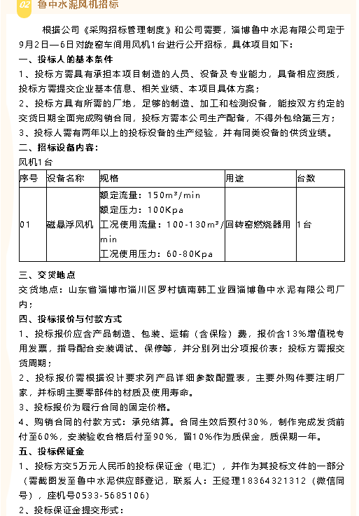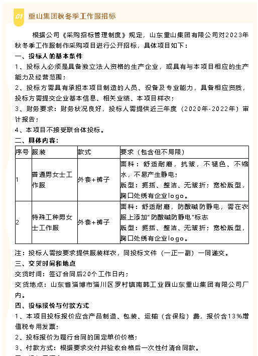 【招標(biāo)公告】重山集團(tuán)秋冬季工作服、魯中水泥風(fēng)機(jī)招標(biāo)