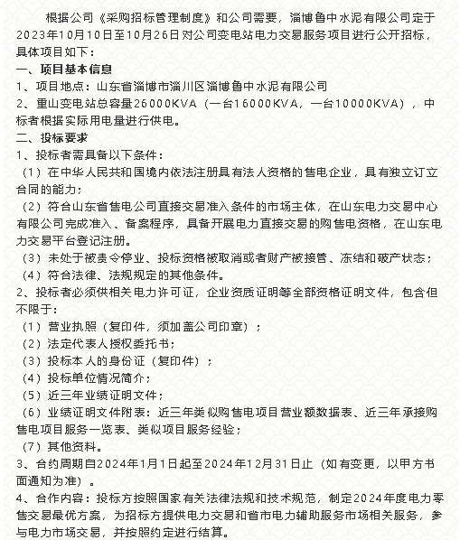 【招標公告】魯中水泥