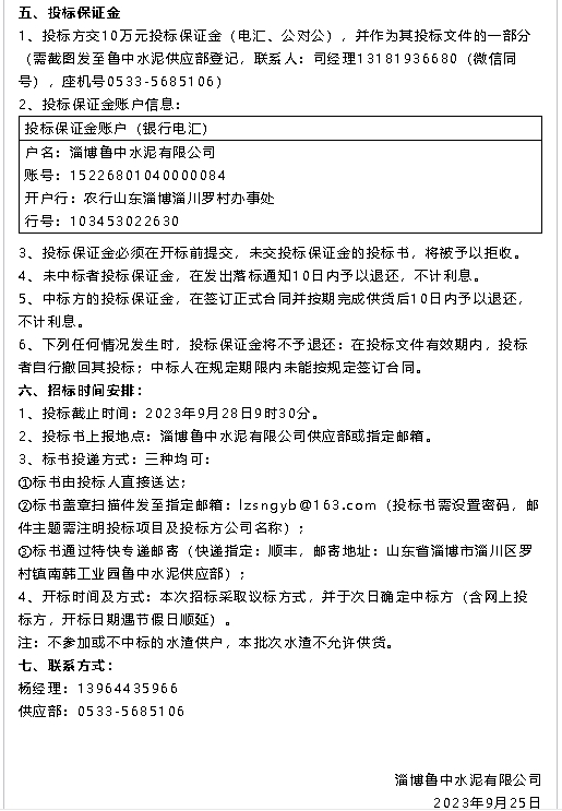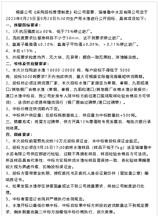 【招標公告】魯中水泥