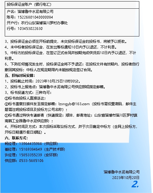 【招標(biāo)公告】魯中水泥