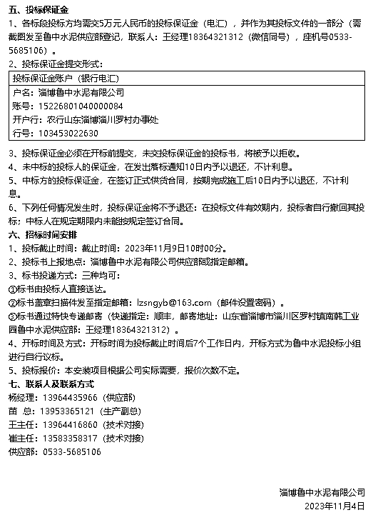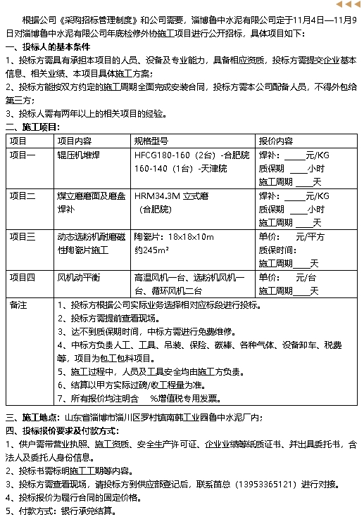 【招標公告】魯中水泥
