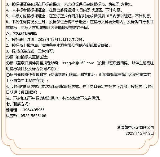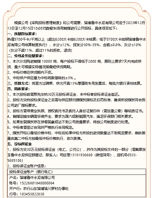 【招標公告】魯中水泥