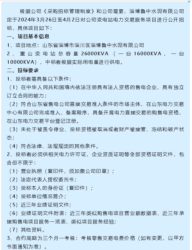 【招標公告】魯中水泥