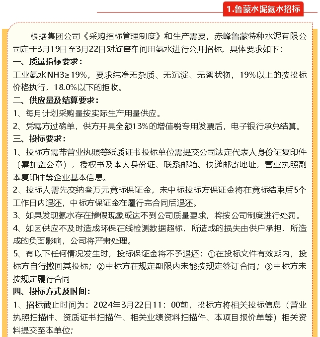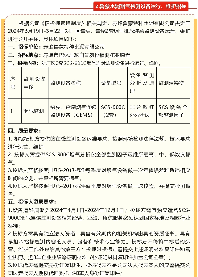 【招標(biāo)公告】魯蒙水泥