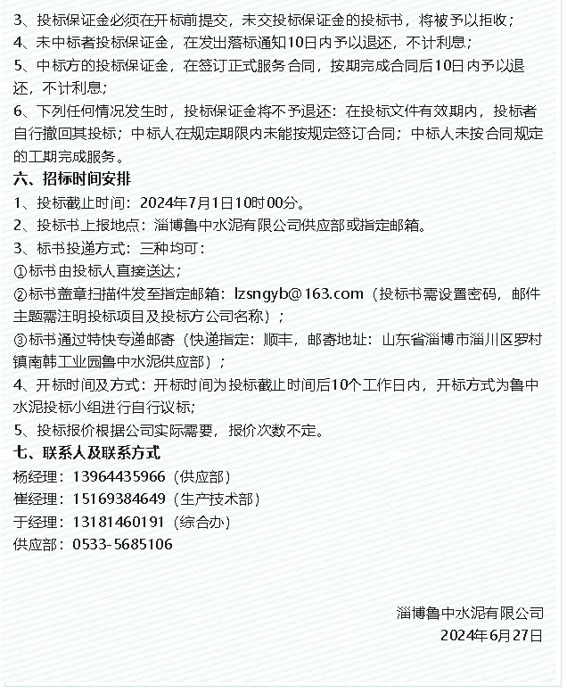 【招標(biāo)公告】魯中水泥、魯蒙水泥