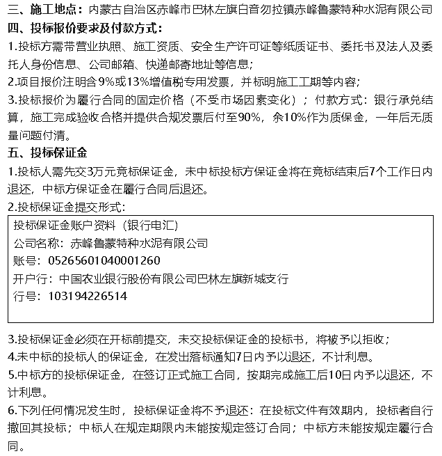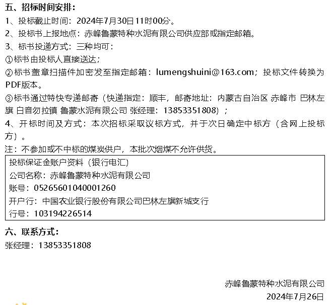 【招標公告】魯蒙水泥檢修項目、煙煤招標