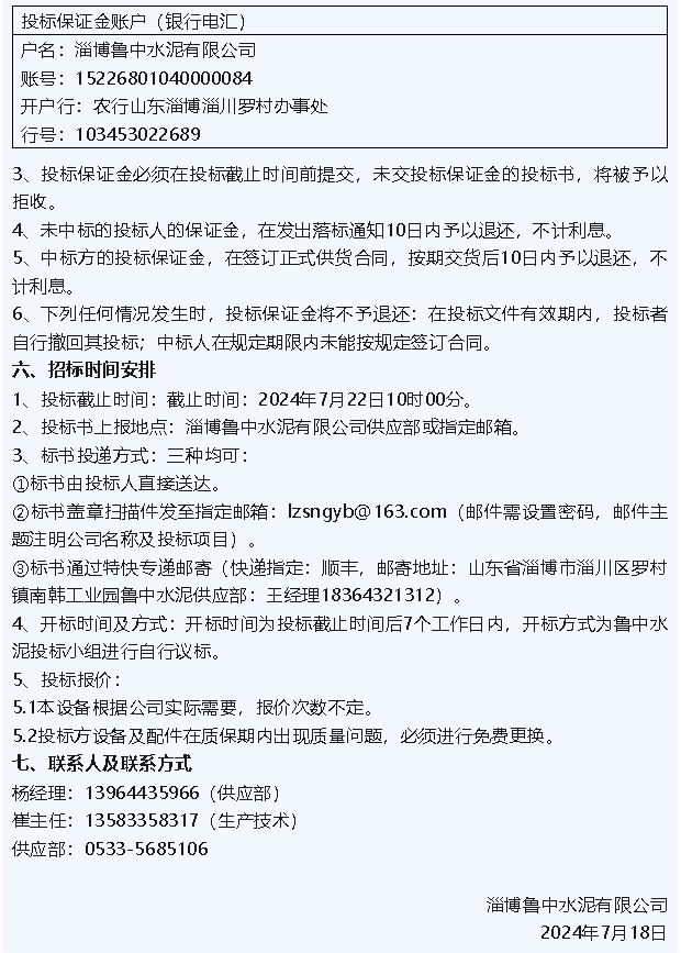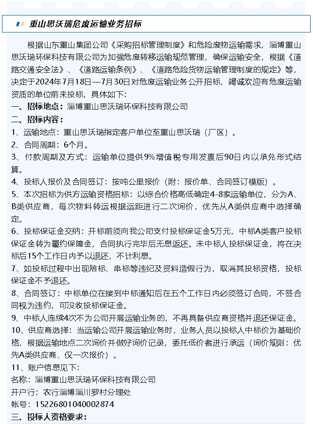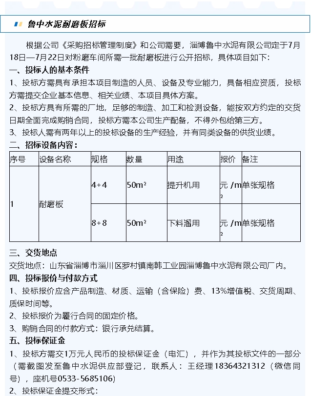 【招標(biāo)公告】魯中水泥、重山思沃瑞