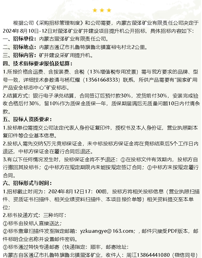 【招標公告】螢澤礦業(yè)