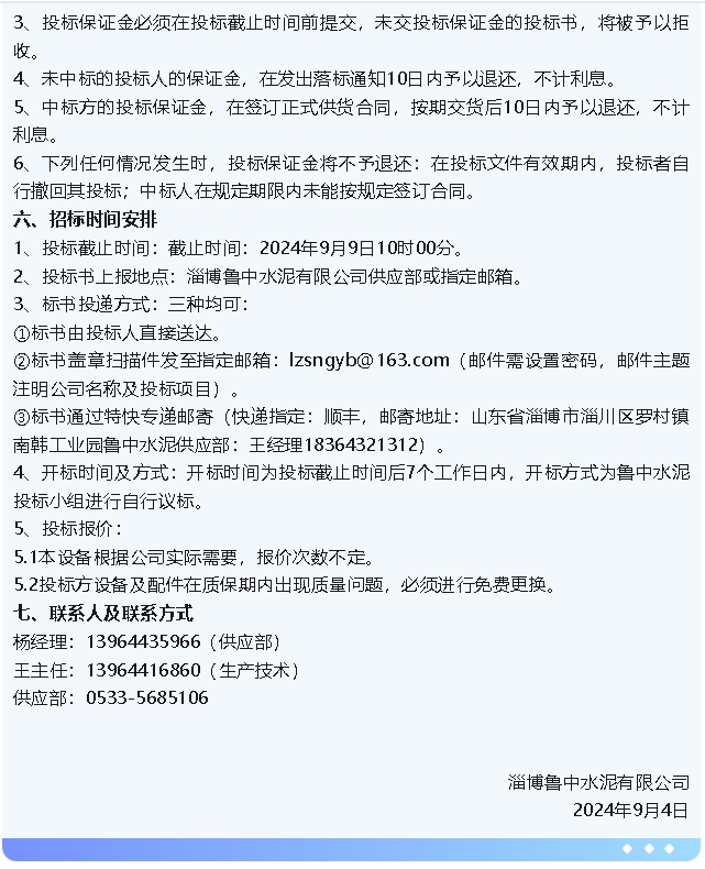 【招標(biāo)公告】集團(tuán)公司、魯中水泥