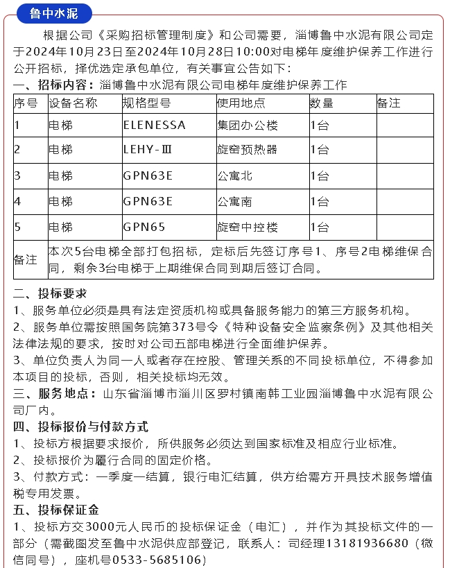 【招標(biāo)公告】魯蒙水泥、魯中水泥