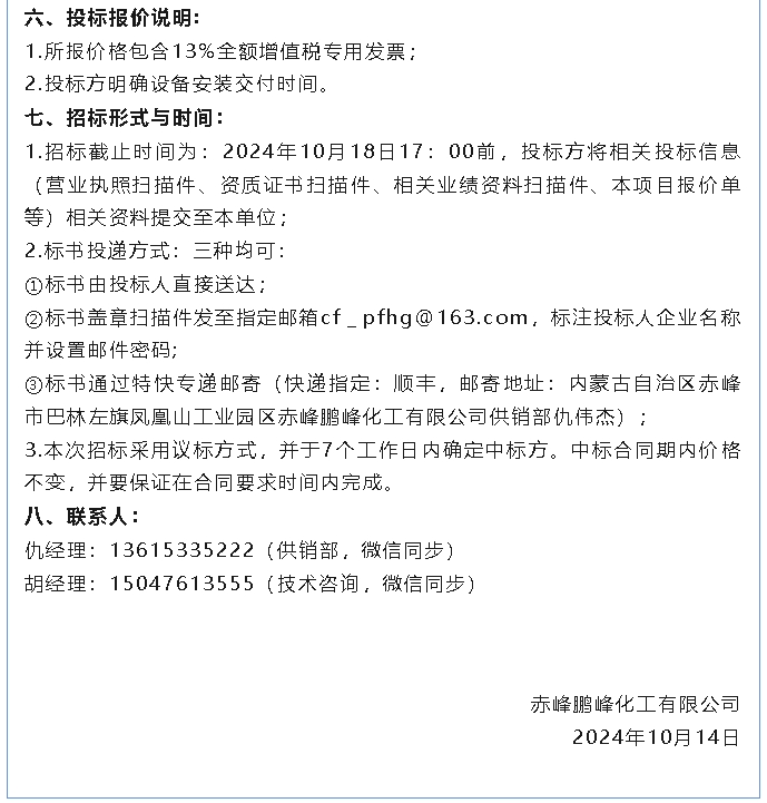 【招標公告】鵬峰化工