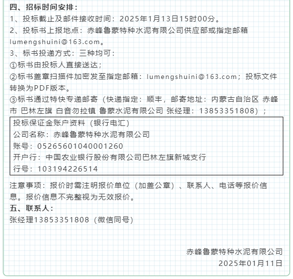 【招標(biāo)公告】魯蒙水泥