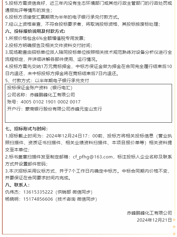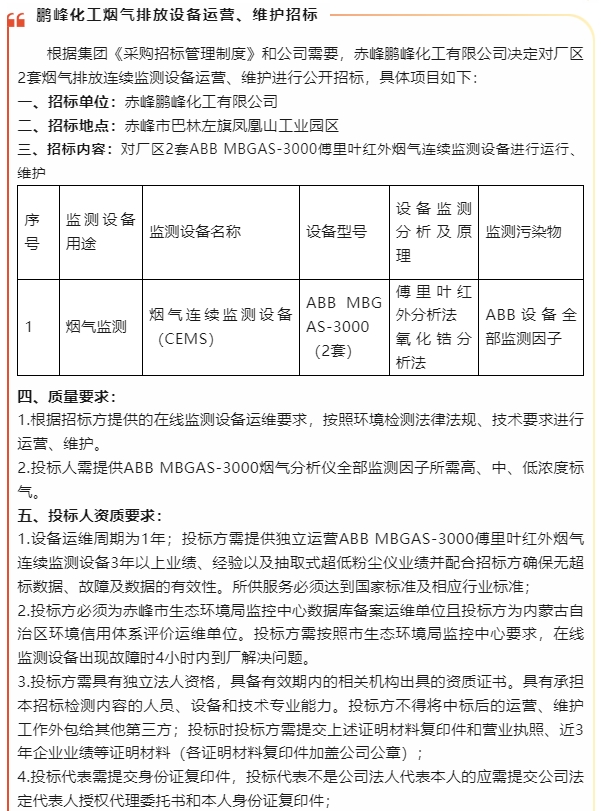 【招標公告】魯中水泥、鵬峰化工
