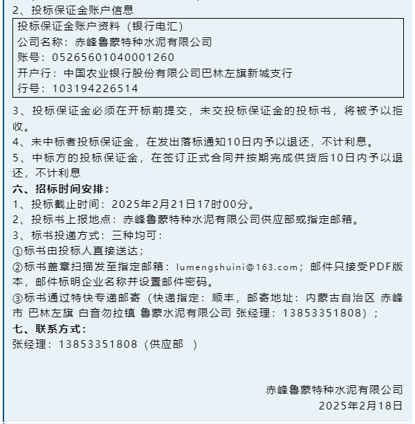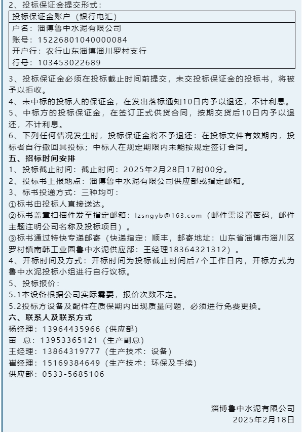 【招標(biāo)公告】魯蒙水泥、魯中水泥