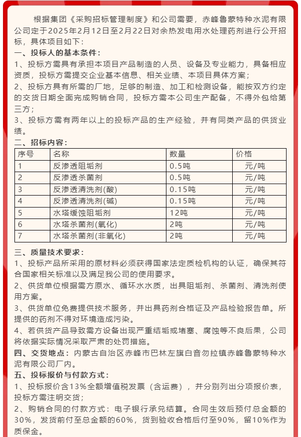 【招標公告】魯蒙水泥