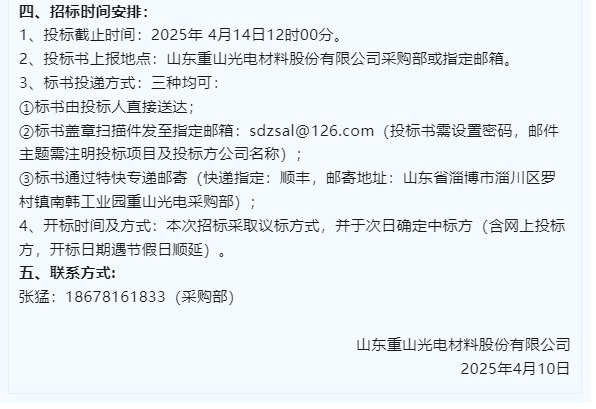 【招標公告】魯中水泥、重山光電